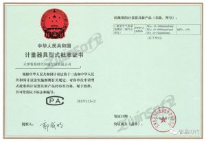 計(jì)量器具型式批準(zhǔn)證書(shū)