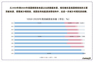 要治理碳排放我們首先想到的就是——煤炭,從1950年到2020年我國碳排放來源占比的數(shù)據(jù)來看,煤炭確實(shí)是我國碳排放的主要來源。